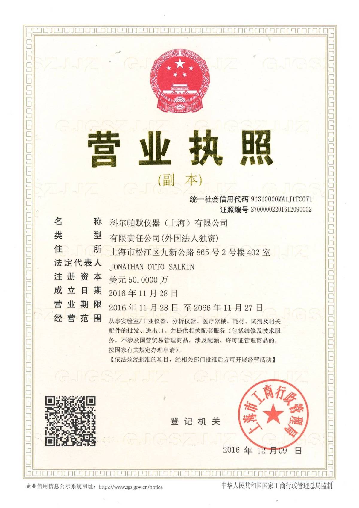 科尔帕默仪器(上海)有限公司企业类型